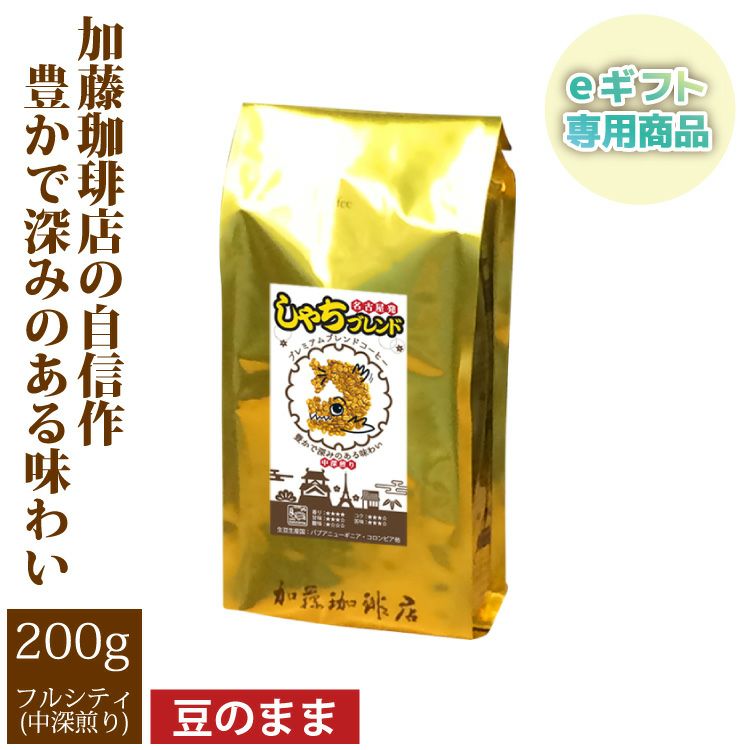 コーヒー 珈琲 加藤珈琲 スペシャルティ (eギフト専用)プレミアムブレンド【しゃちブレンド】(200g)<挽き具合:豆のまま>