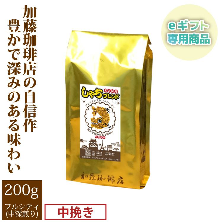 コーヒー 珈琲 加藤珈琲 スペシャルティ (eギフト専用)プレミアムブレンド【しゃちブレンド】(200g)<挽き具合:中挽き>