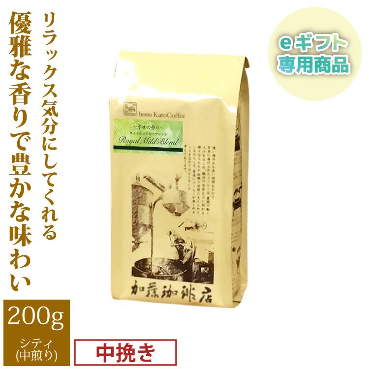 コーヒー 珈琲 加藤珈琲 スペシャルティ (eギフト専用)幸せの香りロイヤルマイルドブレンド(200g)<挽き具合:中挽き>