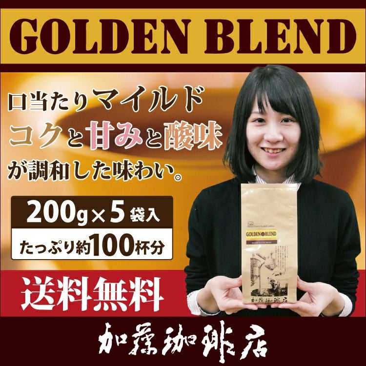 送料無料 コーヒー 珈琲 加藤珈琲 スペシャルティ (200gVer)ゴールデンブレンド5袋入珈琲福袋[G200×5]/珈琲豆