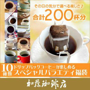 200袋(R)10種類のドリップバッグコーヒーが楽しめるスペシャルバラエティ福袋(ブル・honuマンデ・鯱・甘い・ゴールデン・ヨーロ・スッキリ・青・赤・Cエル/各20袋) ドリップコーヒー 送料無料 加藤珈琲