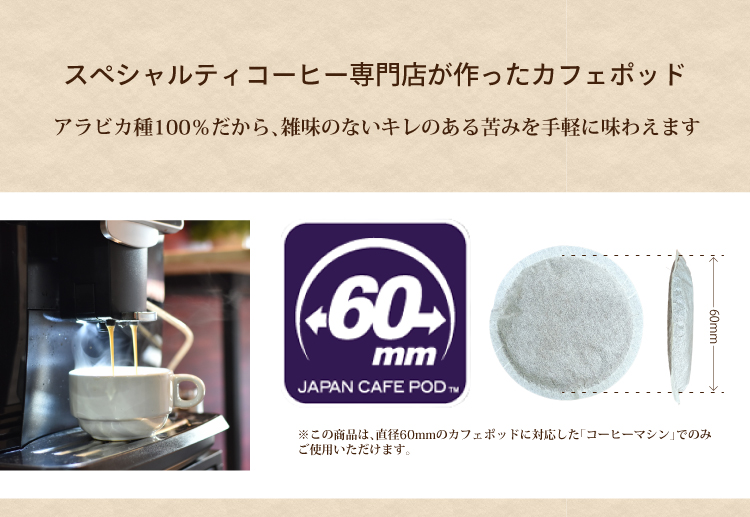こちらの商品はレギュラーコーヒーマシン用のポッドです。エスプレッソマシン用ではありません。