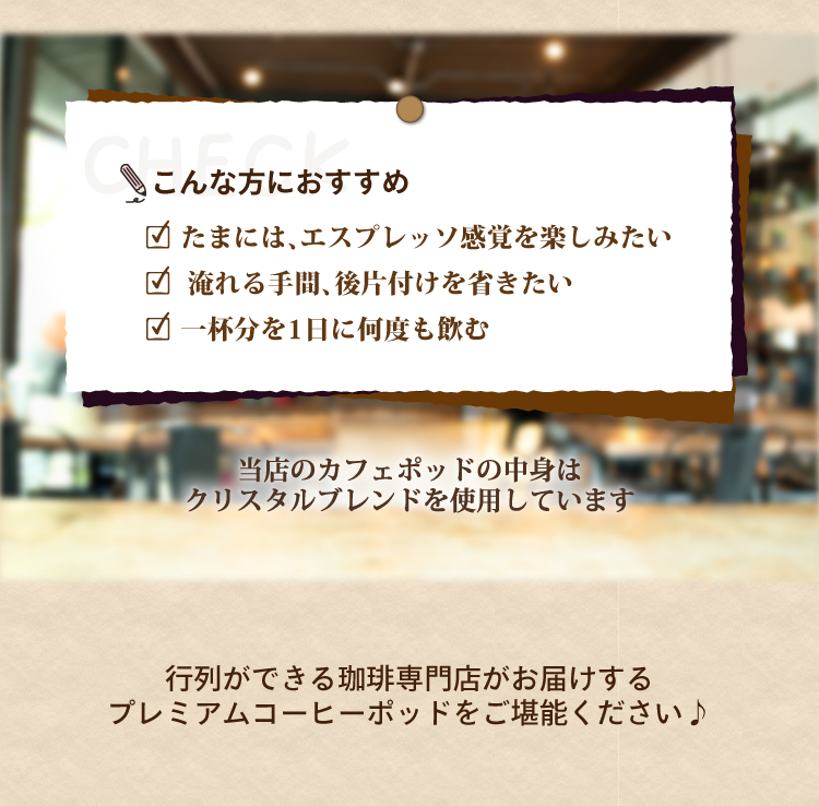 私どもオリジナルのレギュラーコーヒーマシン専用カフェポッドを作りました。
