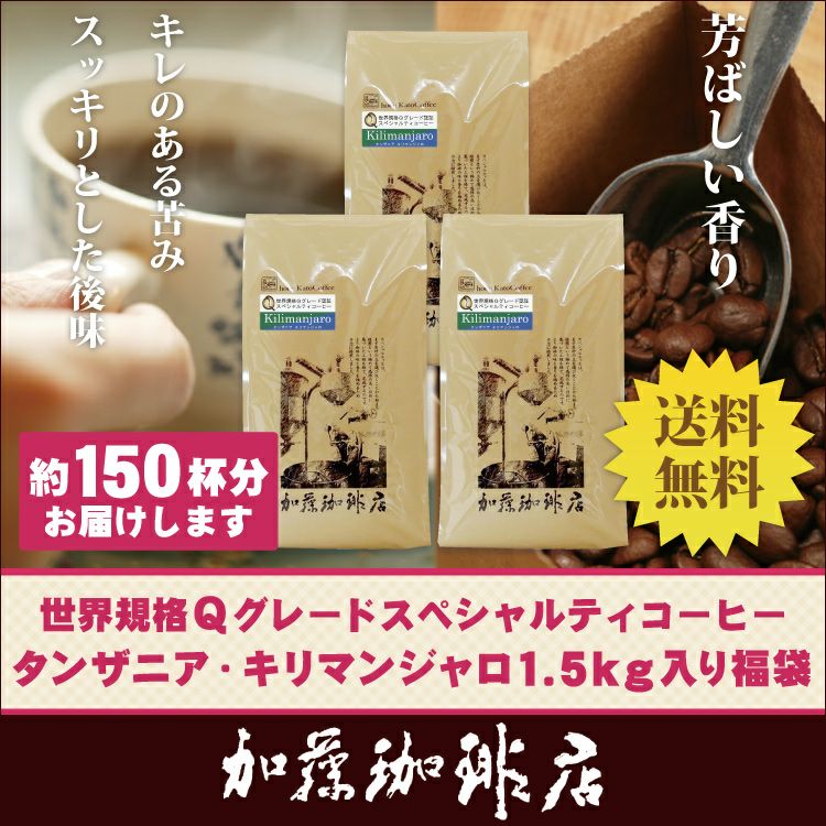 送料無料 コーヒー 珈琲 加藤珈琲 スペシャルティ 世界規格Qグレード珈琲キリマンジャロ1.5kg入り福袋(Qタンザニア×3)/珈琲豆
