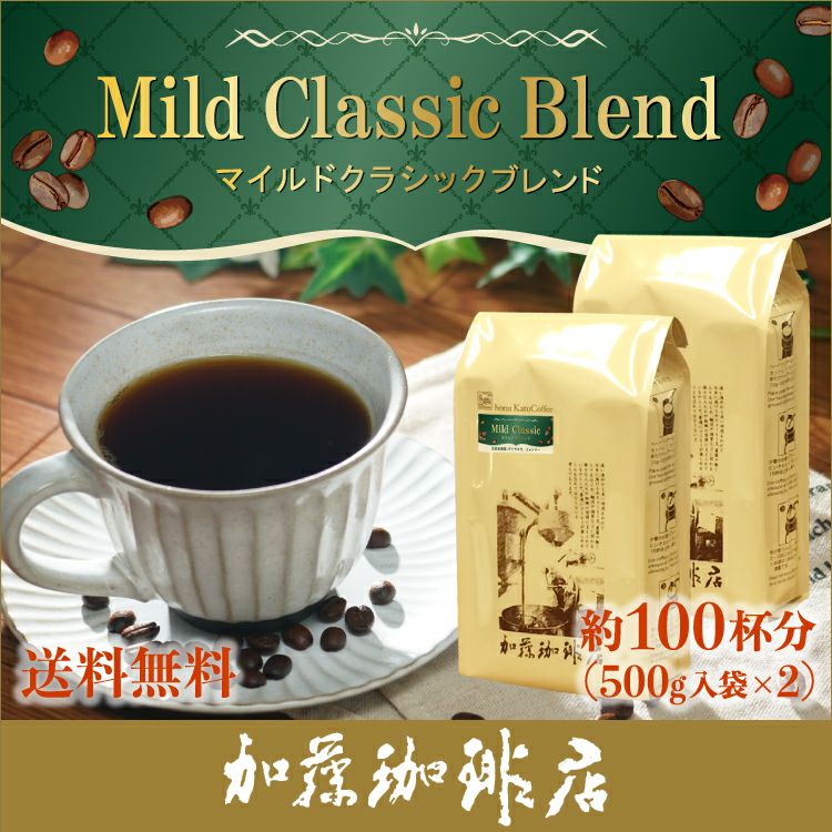 送料無料 コーヒー 珈琲 加藤珈琲 スペシャルティ [1kg]マイルドクラシックブレンド (Mクラシック×2)/珈琲豆 加藤珈琲
