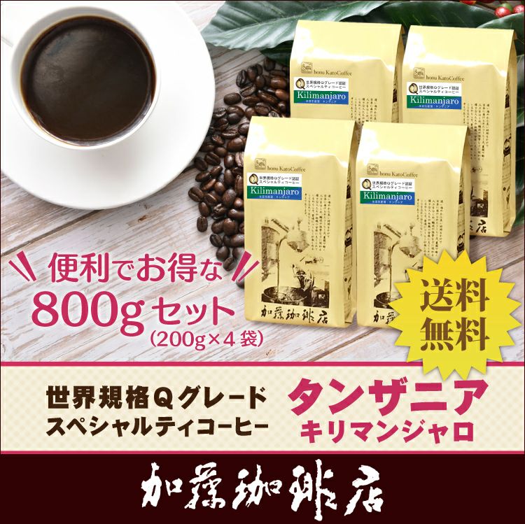 送料無料 コーヒー 珈琲 加藤珈琲 スペシャルティ (200g×4)タンザニア・キリマンジャロ世界規格Qグレード珈琲豆(Qタン×4/各200g)/珈琲豆