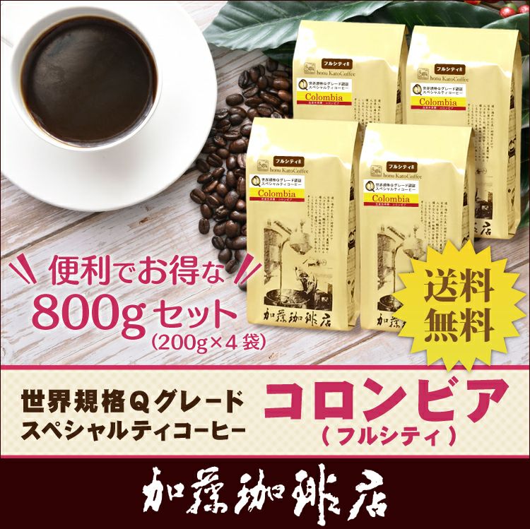 送料無料 コーヒー 珈琲 加藤珈琲 スペシャルティ (200g×4)(フルシティ)コロンビア世界規格Qグレード珈琲豆(フルQコロ×4/各200g)/珈琲豆