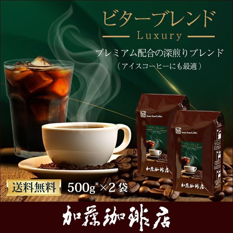 送料無料 コーヒー 珈琲 加藤珈琲 スペシャルティ (1kg)ビターブレンド(luxury)(ビター×2)/珈琲豆
