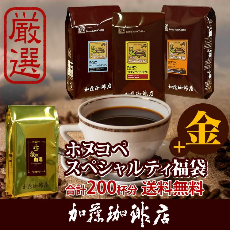 送料無料 コーヒー 珈琲 加藤珈琲 スペシャルティ 黄金のホヌコペ厳選福袋[Hコロ・Hパプア・Hマンデ・金]/珈琲豆