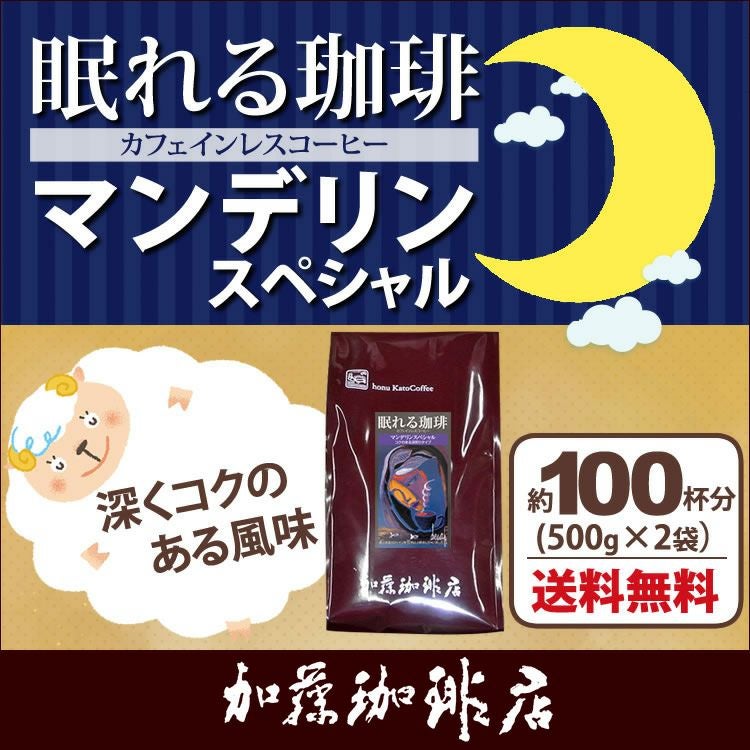 送料無料 コーヒー 珈琲 加藤珈琲 スペシャルティ [1kg]眠れる珈琲マンデリンスペシャル (Dマンデ×2)(デカフェ・カフェインレスコーヒー)/珈琲豆