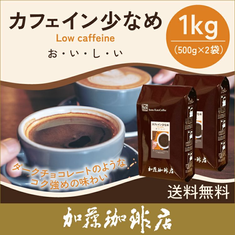 カフェイン少なめ 加藤珈琲 コーヒー 送料無料 良質 少な目 [1kg]カフェイン少なめ【ダークチョコレートのようなコク強めの味わい】(チョコ×2)/珈琲豆