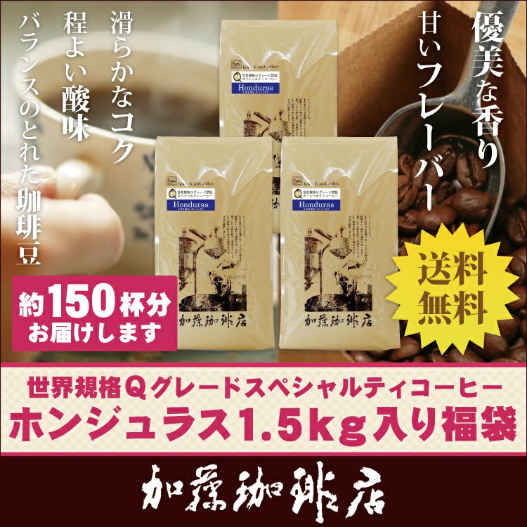 送料無料 コーヒー 珈琲 加藤珈琲 スペシャルティ 世界規格Qグレード珈琲ホンジュラス1.5kg入り福袋(Qホン×3)/珈琲豆
