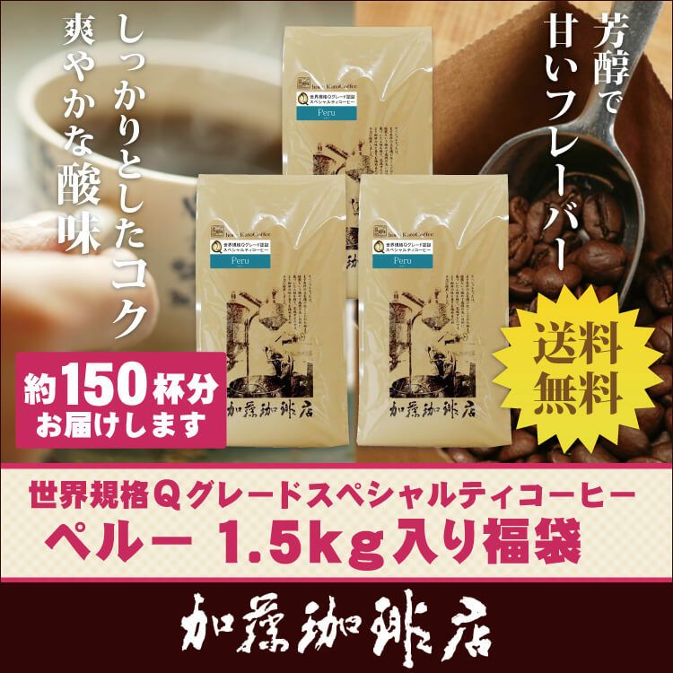 送料無料 コーヒー 珈琲 加藤珈琲 スペシャルティ 世界規格Qグレード珈琲ペルー1.5kg入珈琲福袋(Qペルー×3)/珈琲豆