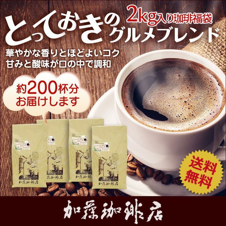 送料無料 コーヒー 珈琲 加藤珈琲 スペシャルティ 【業務用卸メガ盛り2kg】とっておきのグルメブレンド(グルメ×4)
