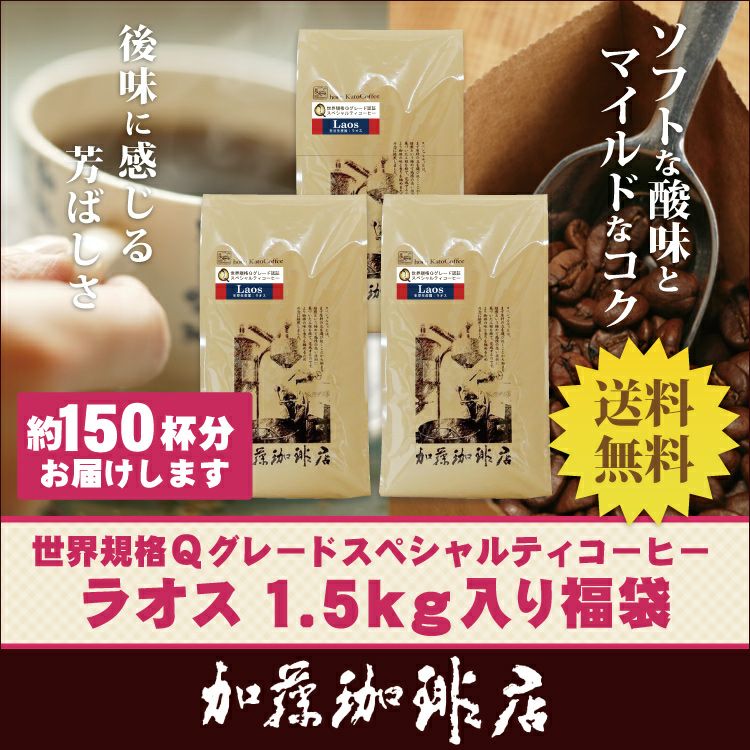 コーヒー 珈琲 加藤珈琲 スペシャルティ 世界規格Qグレード珈琲ラオス1.5kg入り福袋(Qラオ×3)/珈琲豆