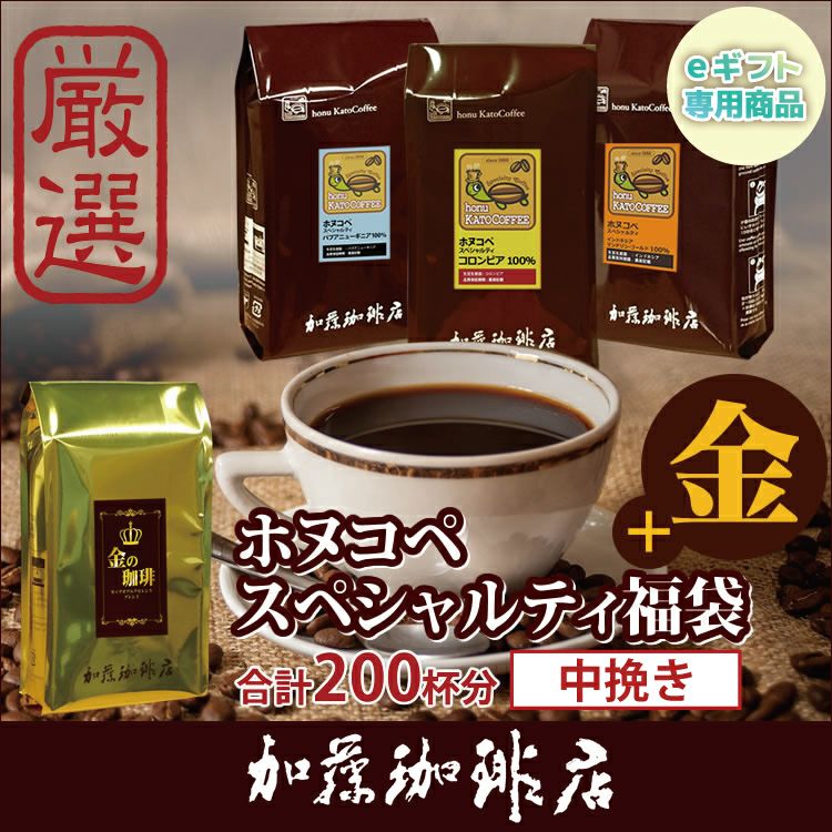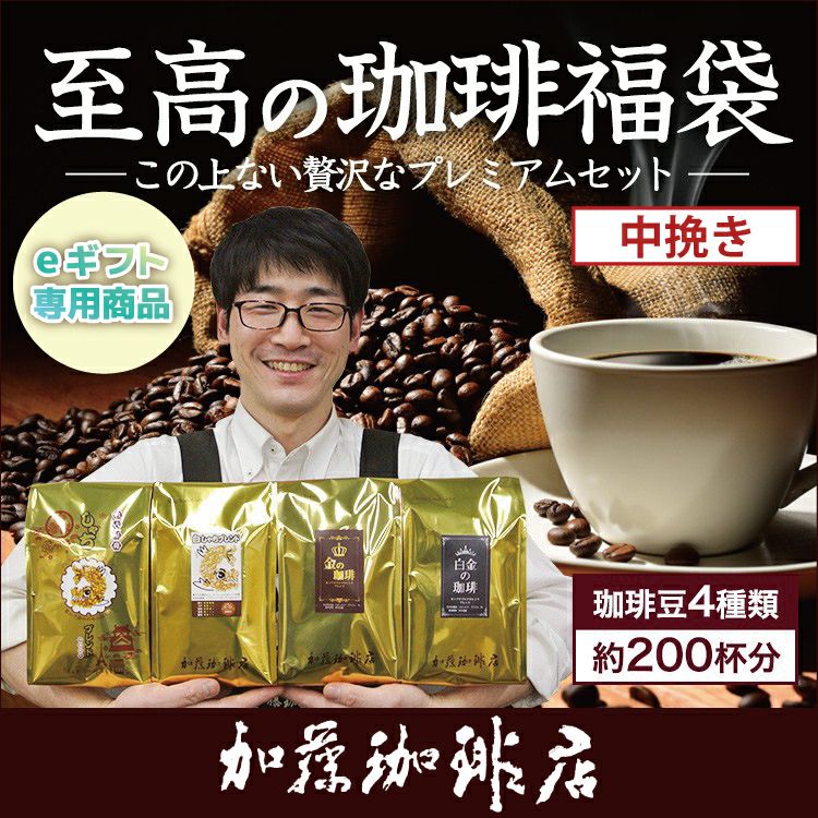 送料無料 コーヒー 珈琲 加藤珈琲 スペシャルティ 至高の福袋(CエルDB×2・金・白金・鯱・白鯱/各500g)
