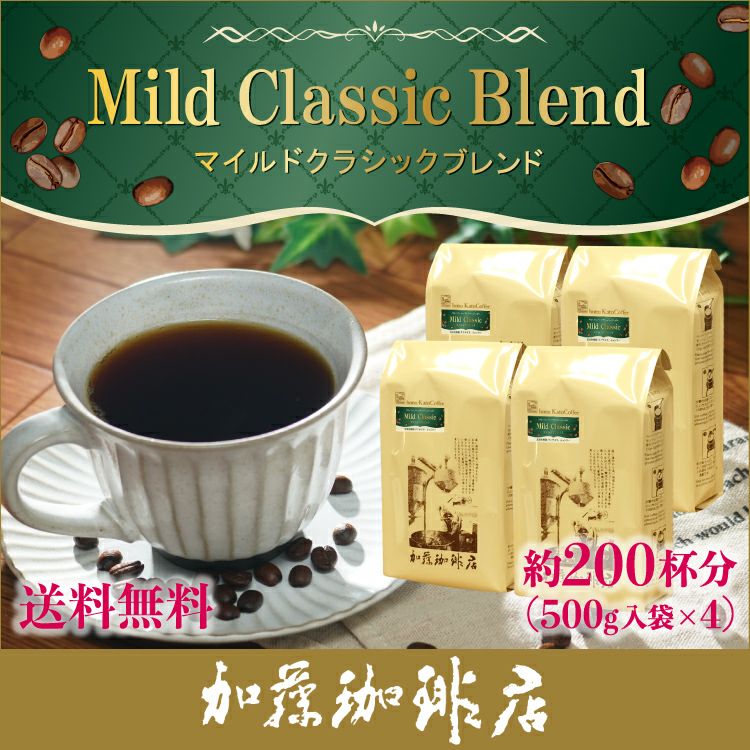 送料無料 コーヒー 珈琲 加藤珈琲 スペシャルティ マイルドクラシックブレンド2kg入セット(Mクラシック×4)/珈琲豆 加藤珈琲